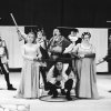 Такой неожиданный пролог к спектаклю Калужского драматического театра «Виндзорские насмешницы» по одноименной комедии В.Шекспира. Впрочем, на пресс-конференции режиссер Александр Плетнев признал, что меньше всего хотел поставить «тривиальную историю» о плутнях лукавых горожанок. Видимо, поэтому он смело перекроил драматургический материал…изменил финал, а также ввел в канву пьесы аллегорические фигуры слепцов, будто сошедших с полотен Питера Брейгеля, которые вносят тревогу и диссонанс в озорную в общем-то комедию. В итоге всех этих метаморфоз из комедии получился яркий манифест в защиту человека, заблудившегося в эпохах, да так и не понявшего, что мир вокруг него стал иным.»